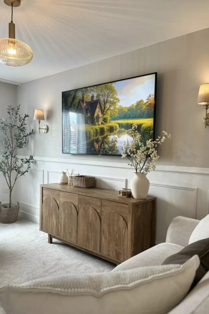 This approach works best in open or modern living rooms where you want warmth without clutter.