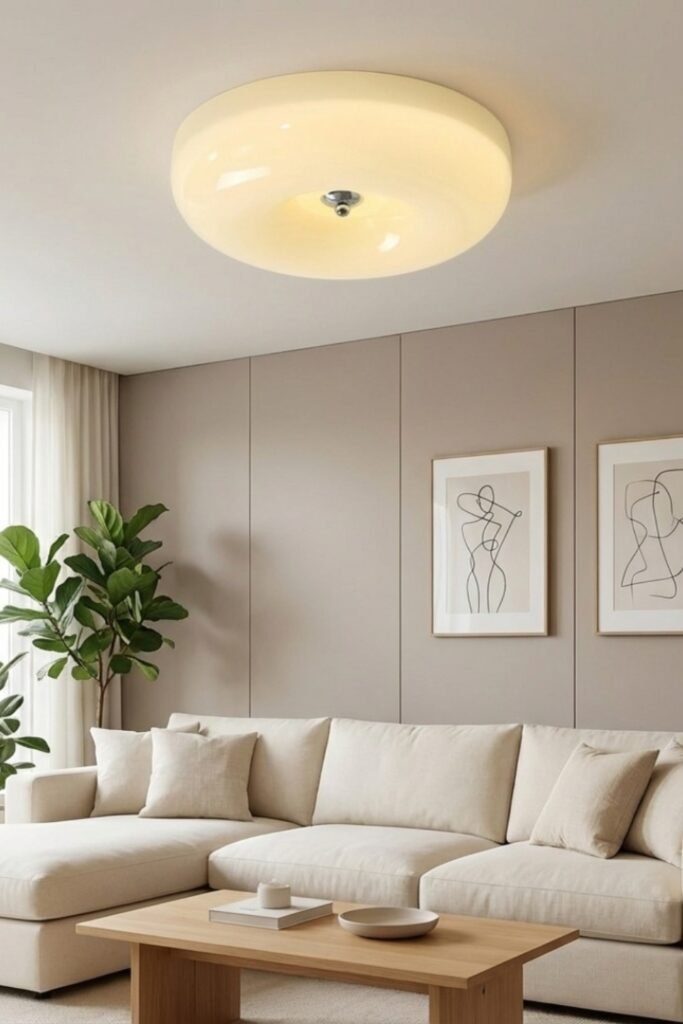 A flush fixture spreads light evenly without stealing attention from the seating area. If your living room feels cluttered or busy, you can try this approach to keep things calm.