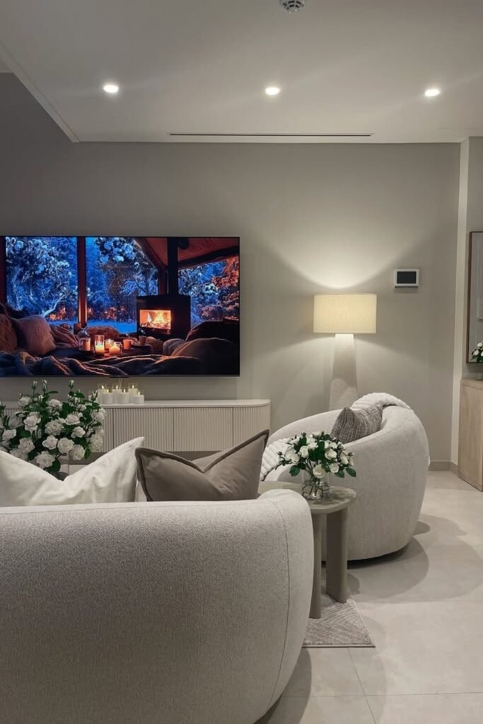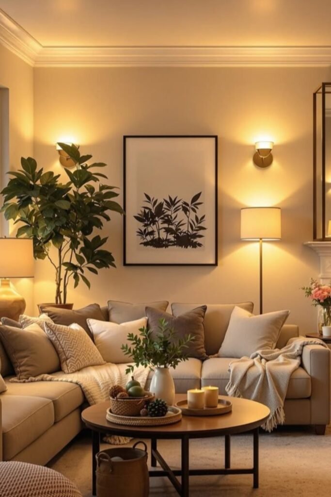 If your living room feels flat, you can light the walls first. This keeps the room bright enough while still feeling relaxed and clean.