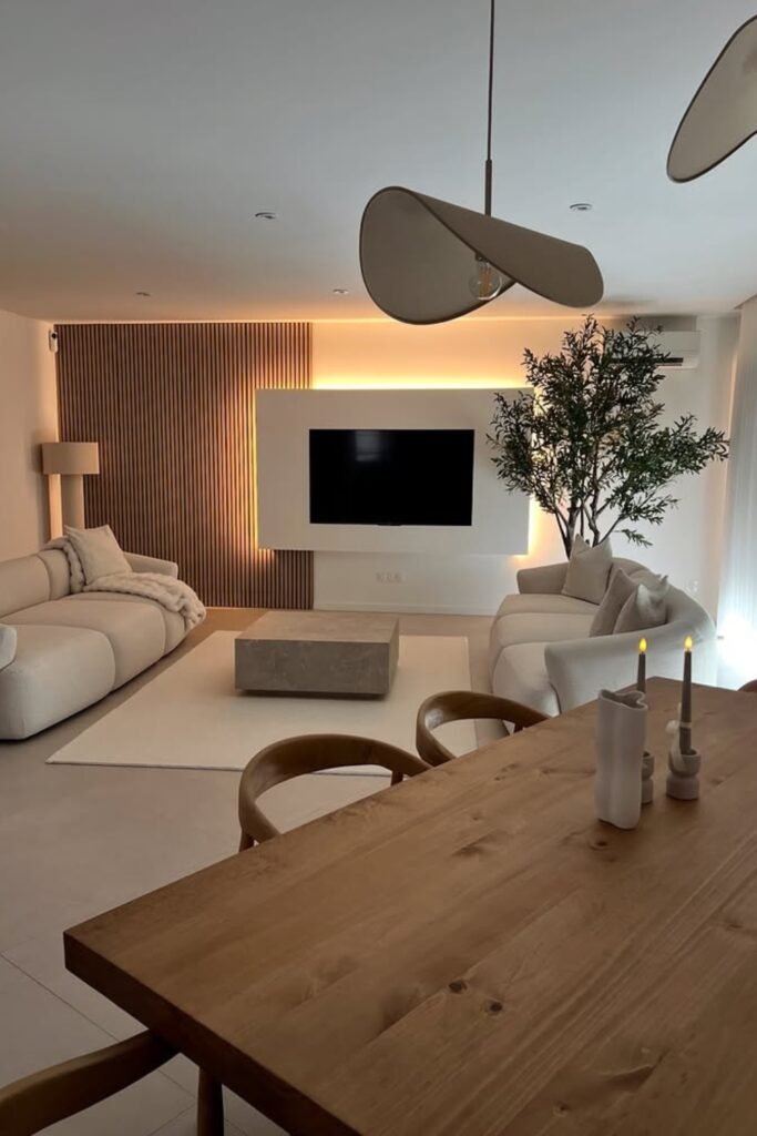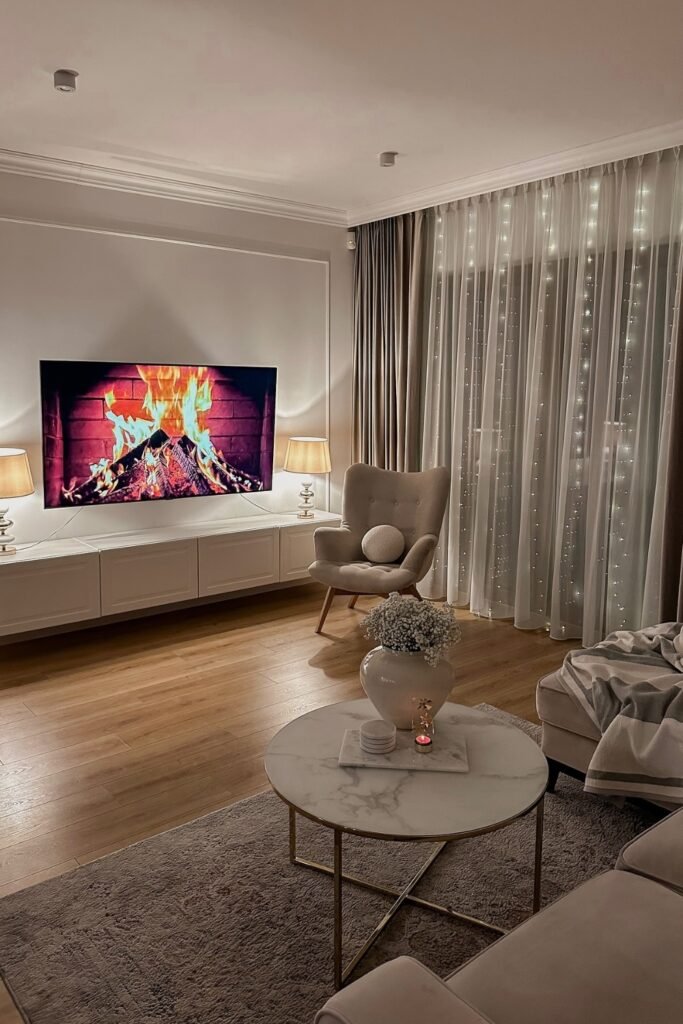 When your living room feels flat or too bright at night, you can add hidden LED strips behind the TV wall or shelving.