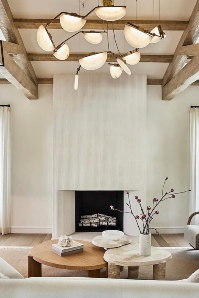You can choose a wide, sculptural fixture to fill the open space and keep the room feeling warm instead of empty.