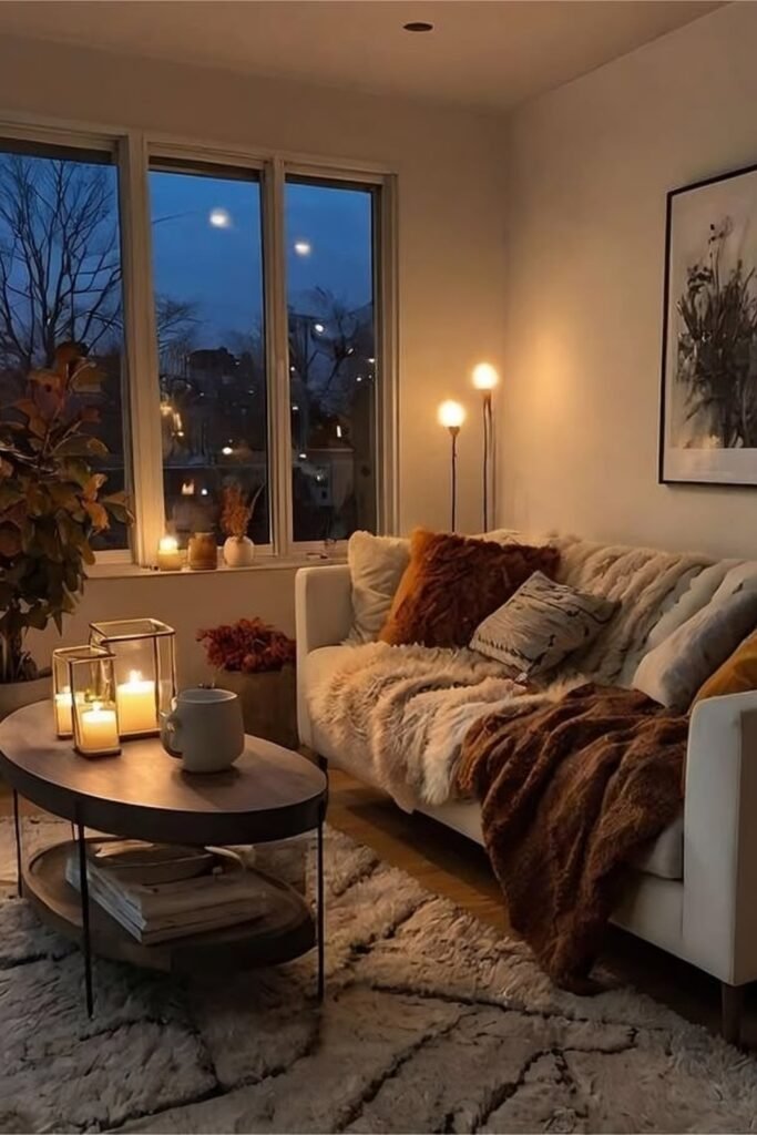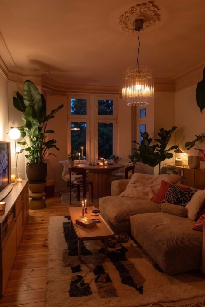 This setup works best for cozy evenings where comfort matters more than brightness.
