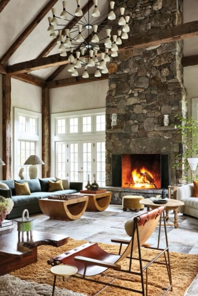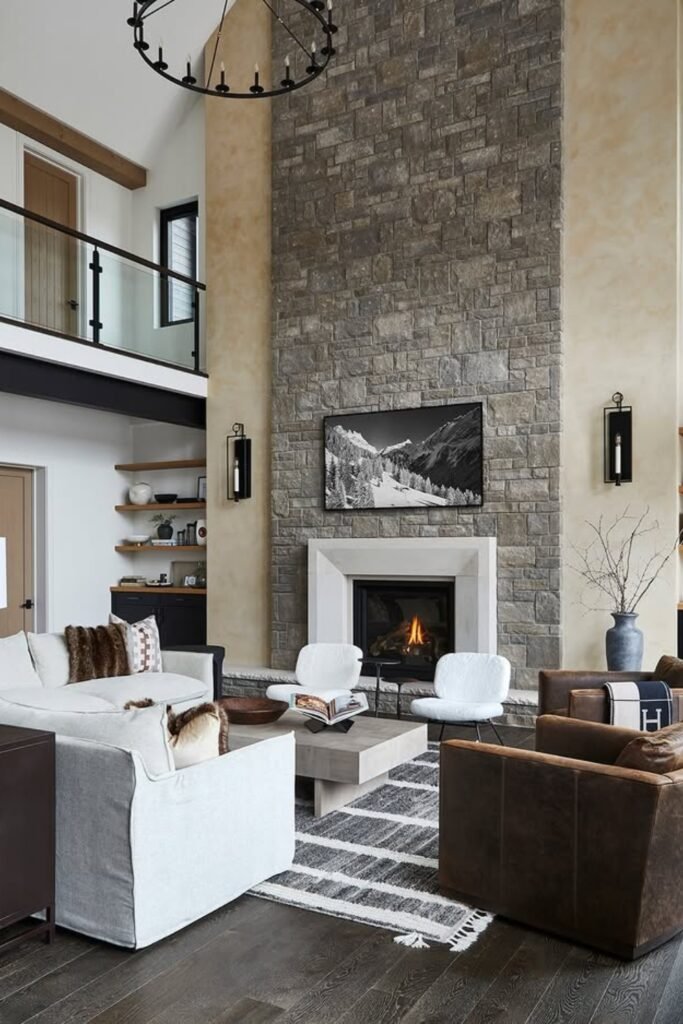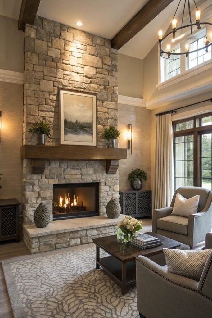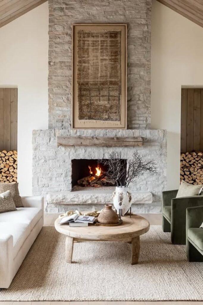 You see light stone textures, you feel the warmth from natural tones, and you’re drawn to the fireplace.