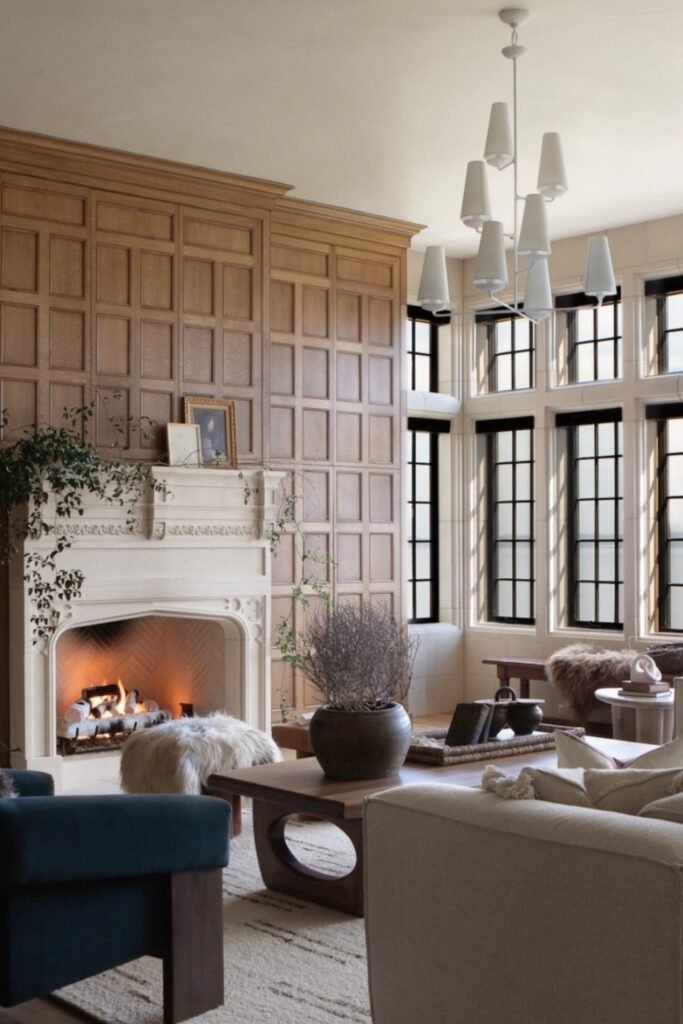 When you center everything around the fireplace, you can make the room feel dramatic yet balanced.