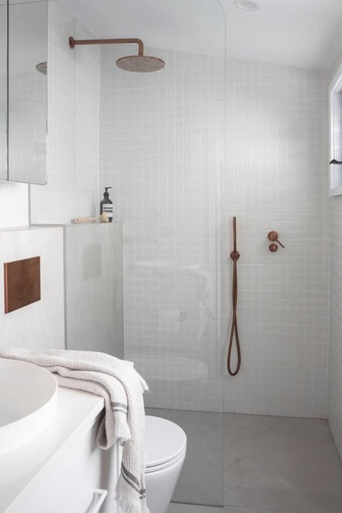You might notice that placing the shower at the far end draws your eye forward, making the space feel longer.