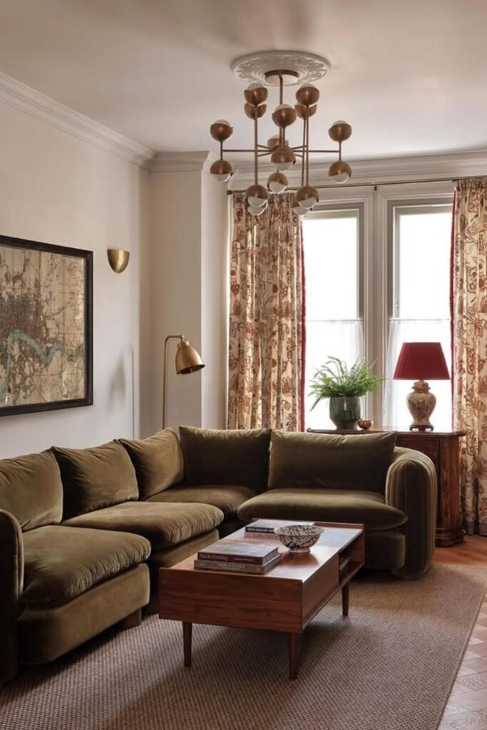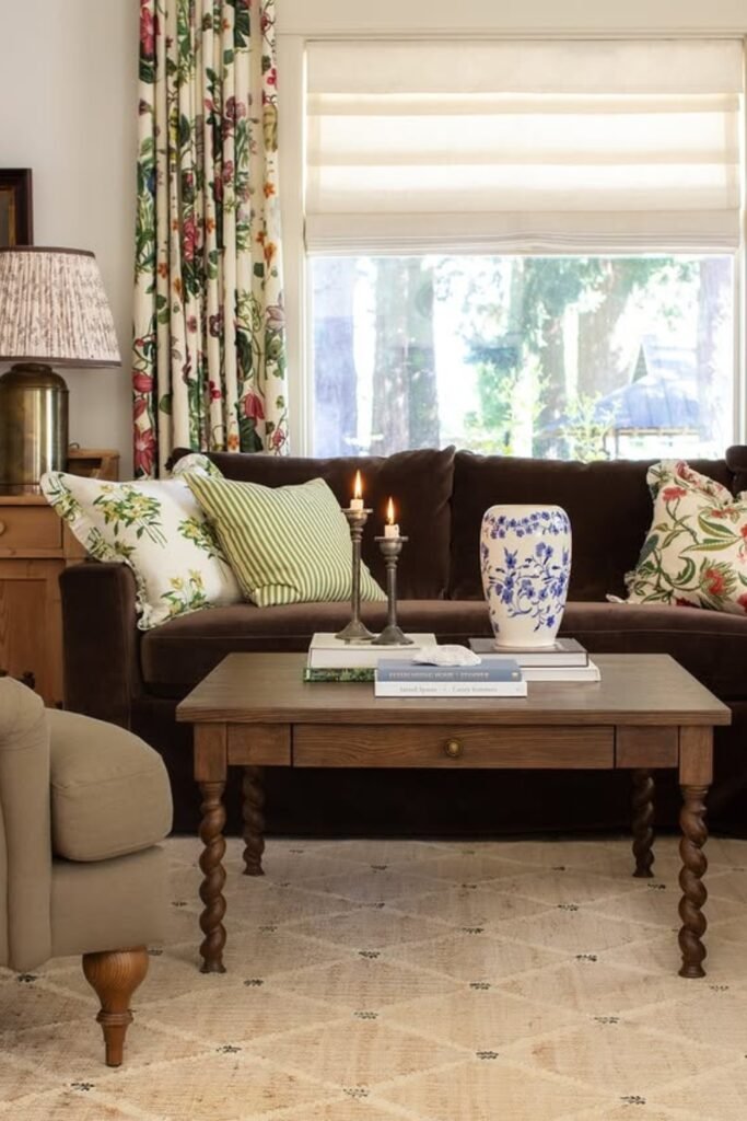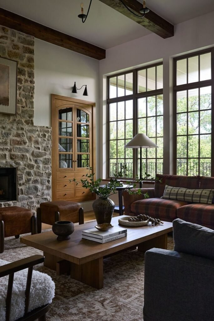 You can group seating to create an intimate zone that stops the room from feeling endless. This works well in traditional or rustic rectangular spaces.