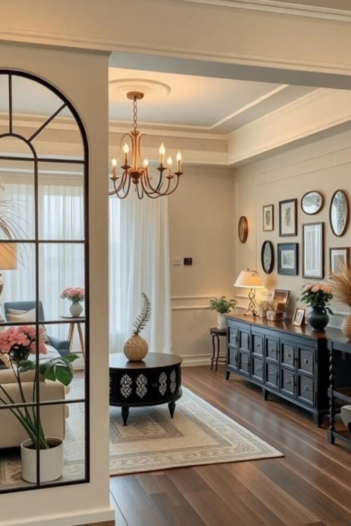 A console or sideboard placed along one side creates a clear boundary while keeping your space open.