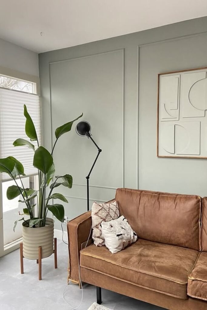 You can frame a wall to give your sofa a clear anchor so the room doesn’t stretch endlessly. This setup is perfect for narrow spaces where floating furniture isn’t an option.