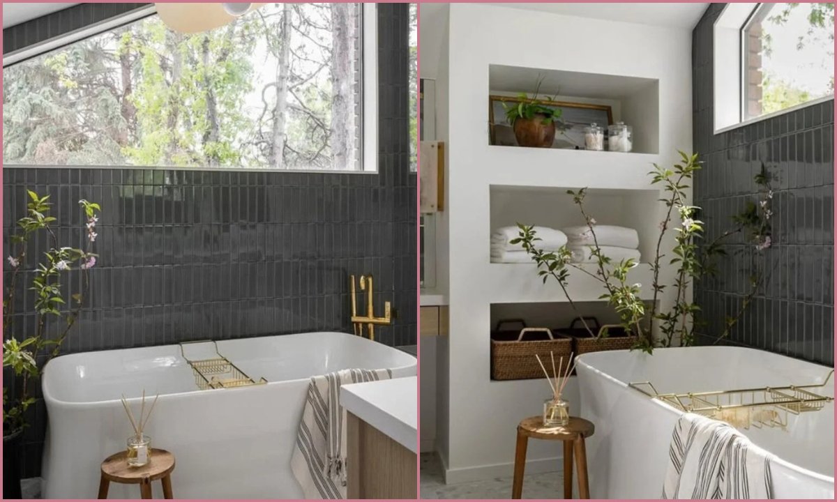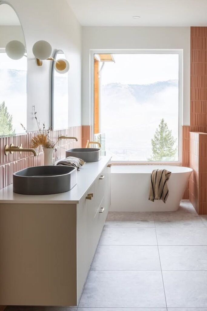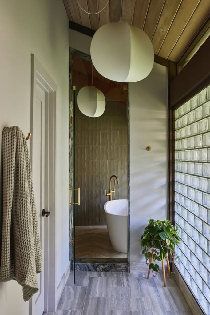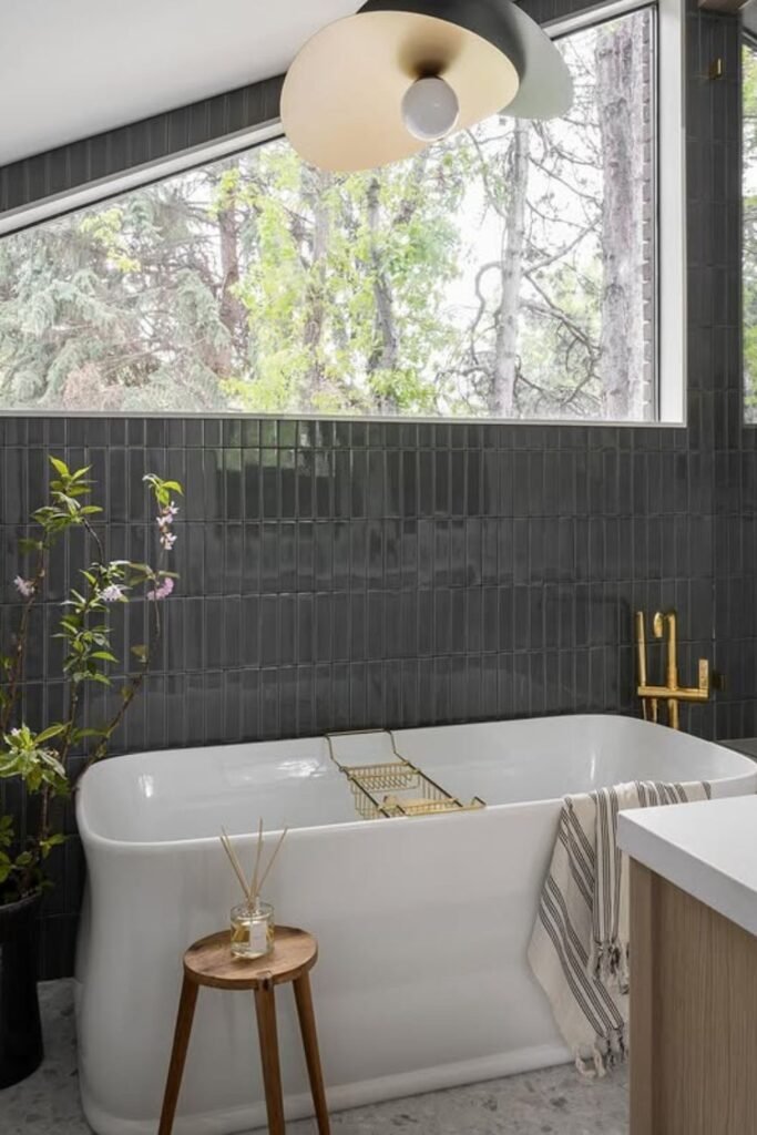 A freestanding tub near a big window finishes the look and gives you a calm, spa-like corner to unwind in.