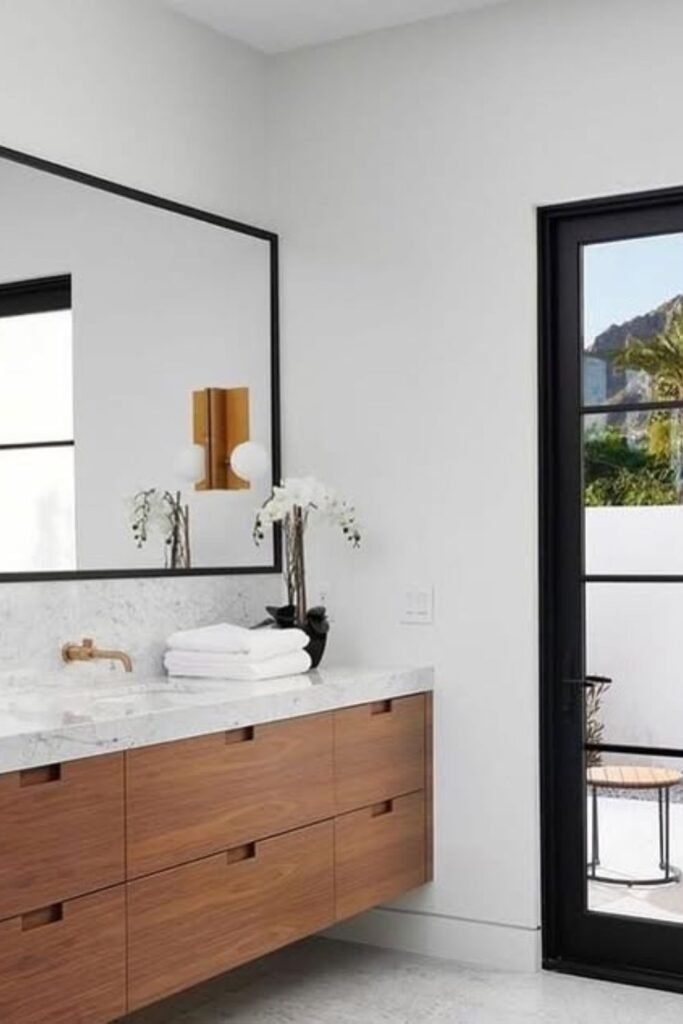And when you combine warm wood, soft lighting, and uncluttered details, your bathroom feels balanced, practical, and naturally mid-century without even trying.
