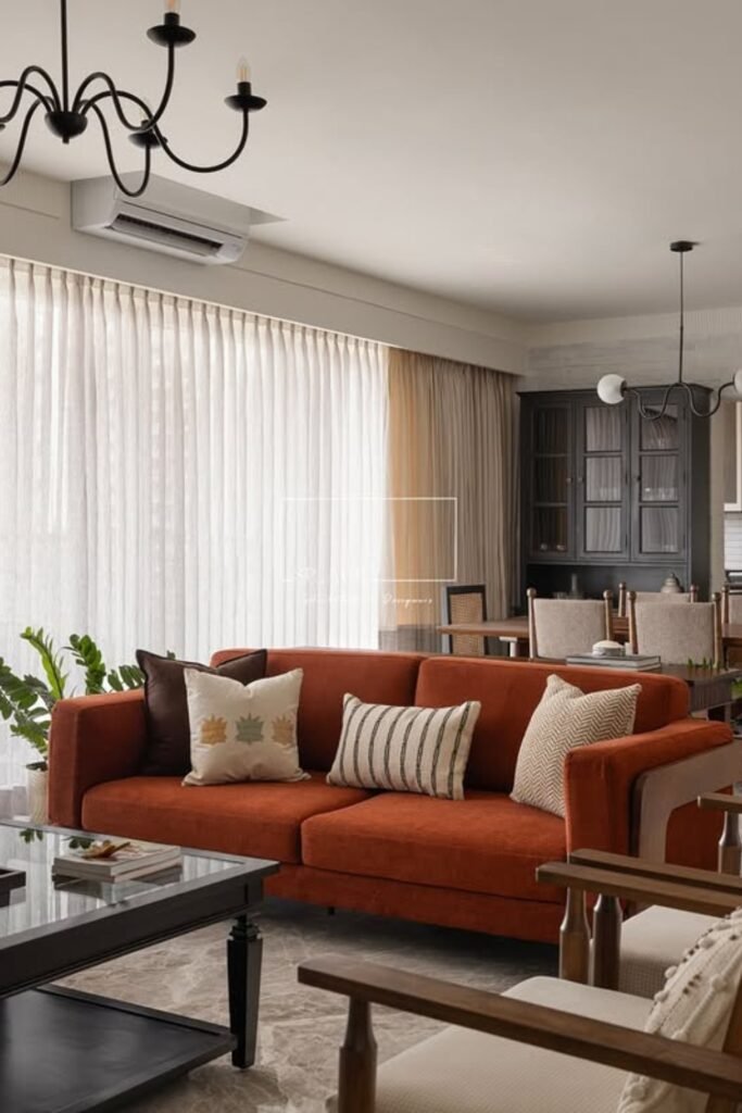 A rust-colored sofa, for example, becomes the focal point energizing the room while keeping it sophisticated.