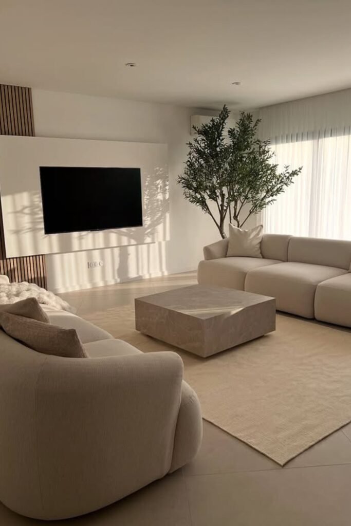 You can make minimalism feel soft, not stark, by focusing on texture and light. In this living room, low furniture, creamy tones, and natural sunlight create instant peace.