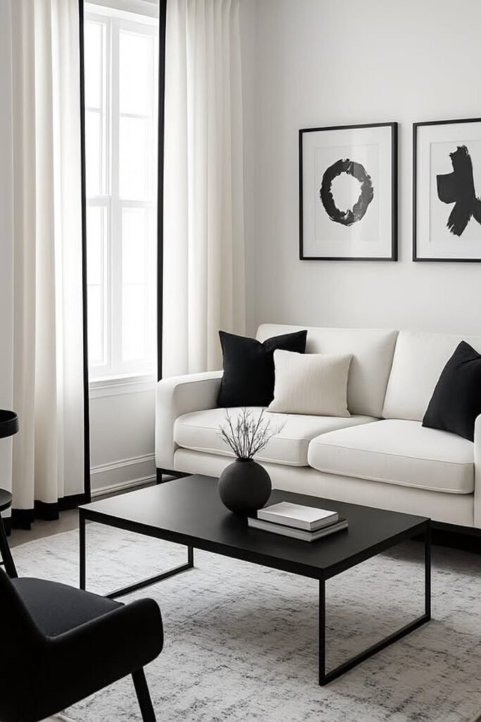 You can bring modern drama into your living room with bold contrast. Black-and-white tones set the stage, while a patterned rug or cushions add rhythm and personality.