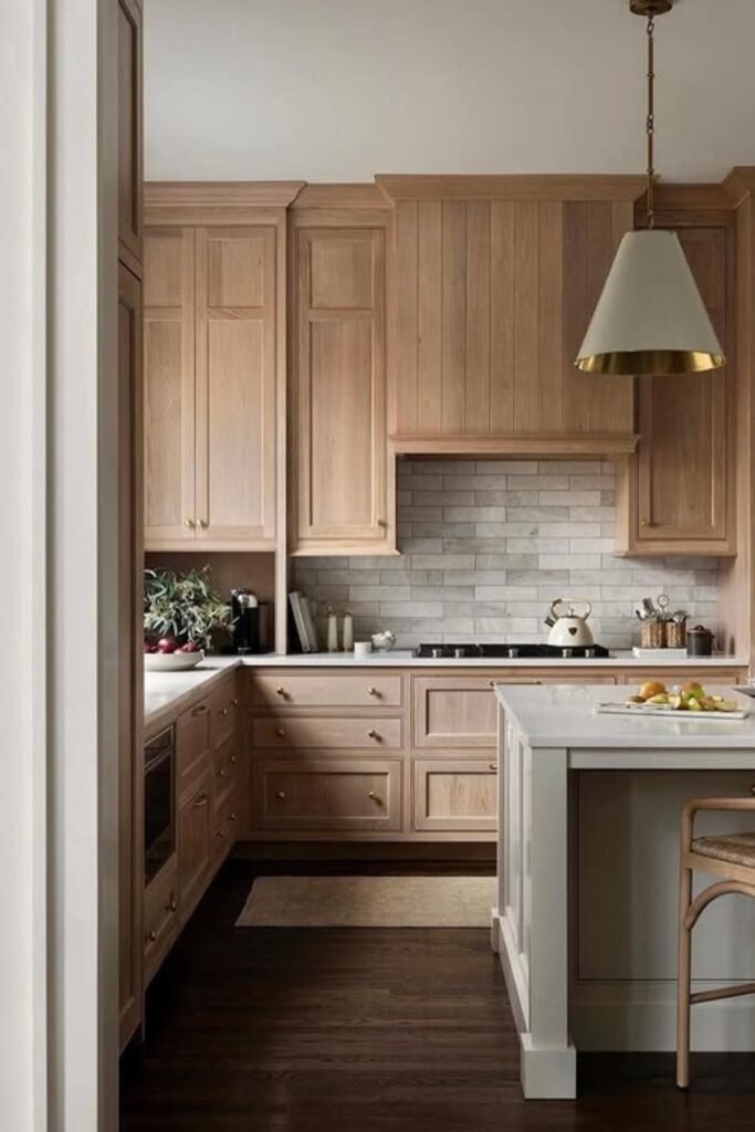 Some kitchens feel peaceful the moment you see them, and you’ll notice light oak cabinets play a big role.