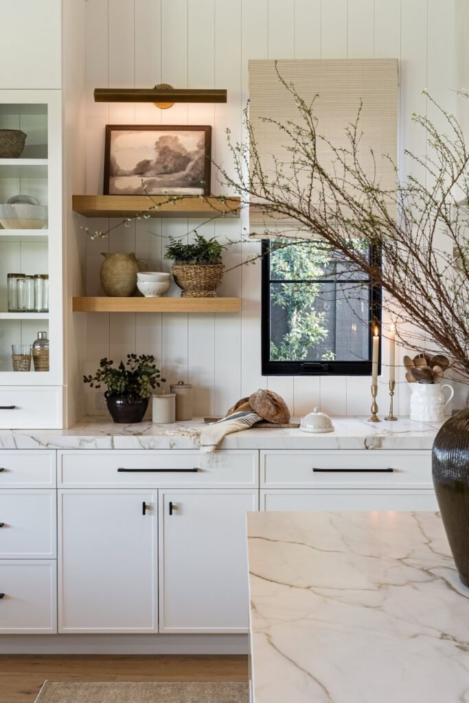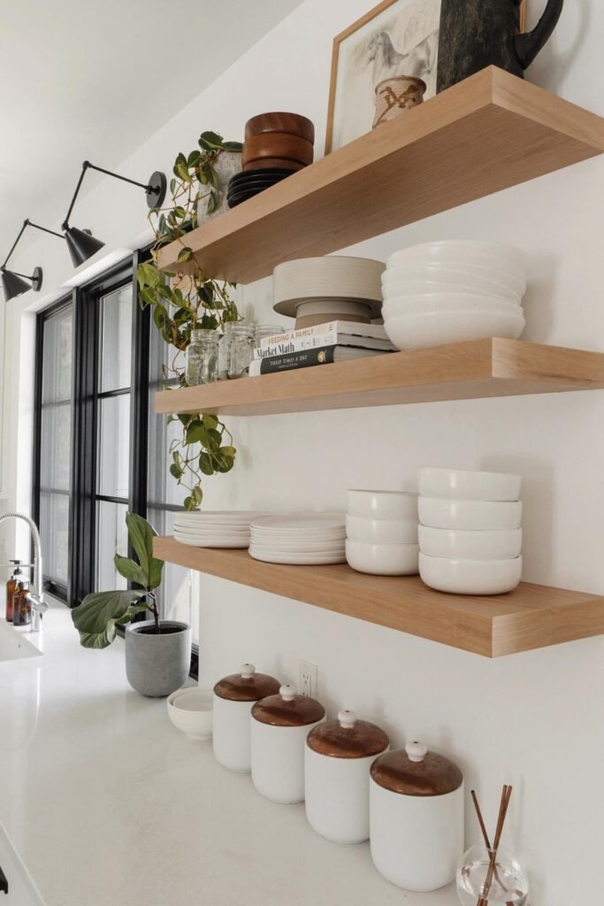 You might think it’s impossible to keep them neat, but you can because styling open shelves isn’t about perfection, it’s about balance.