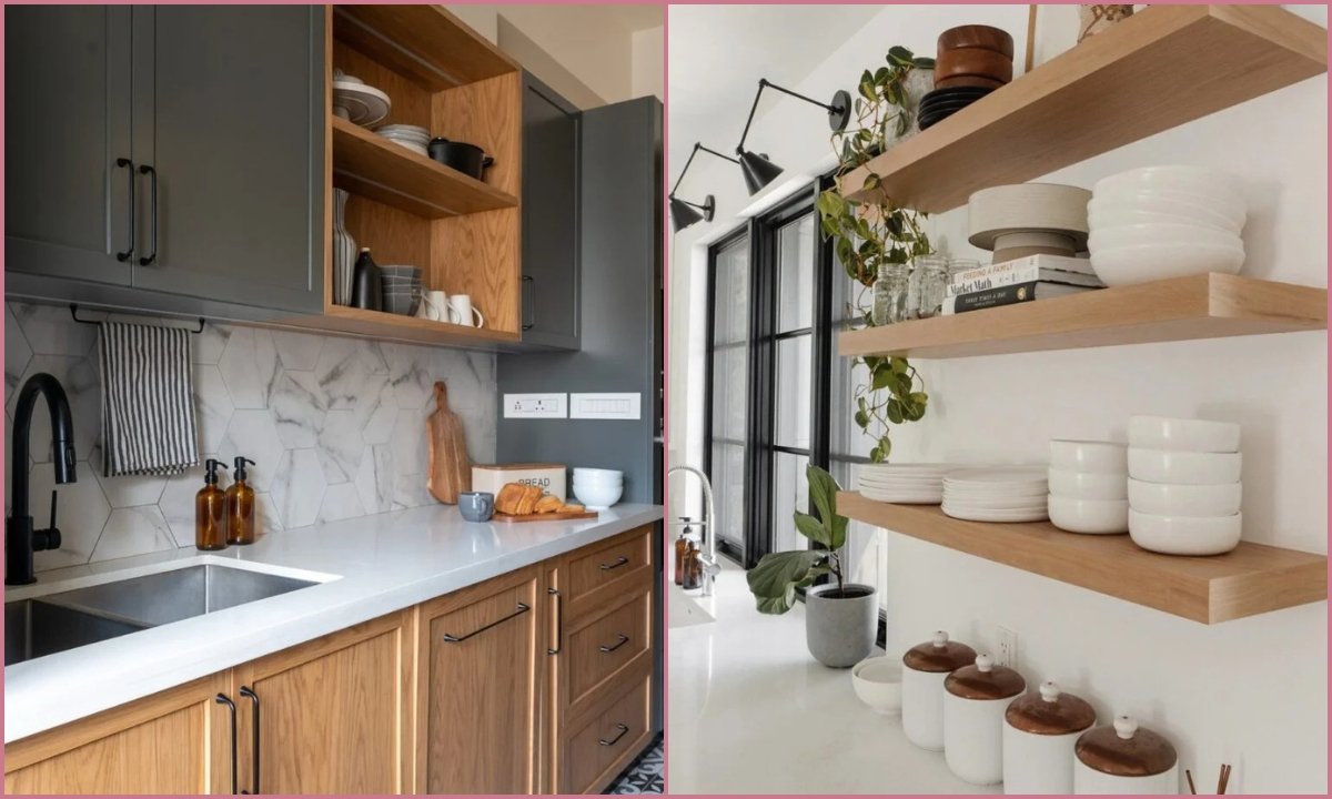 You’ll notice that open shelves often look messy because real kitchens don’t stay picture-perfect. You’ll see dishes pile up, colors clash, and grease settle on anything near the stove.