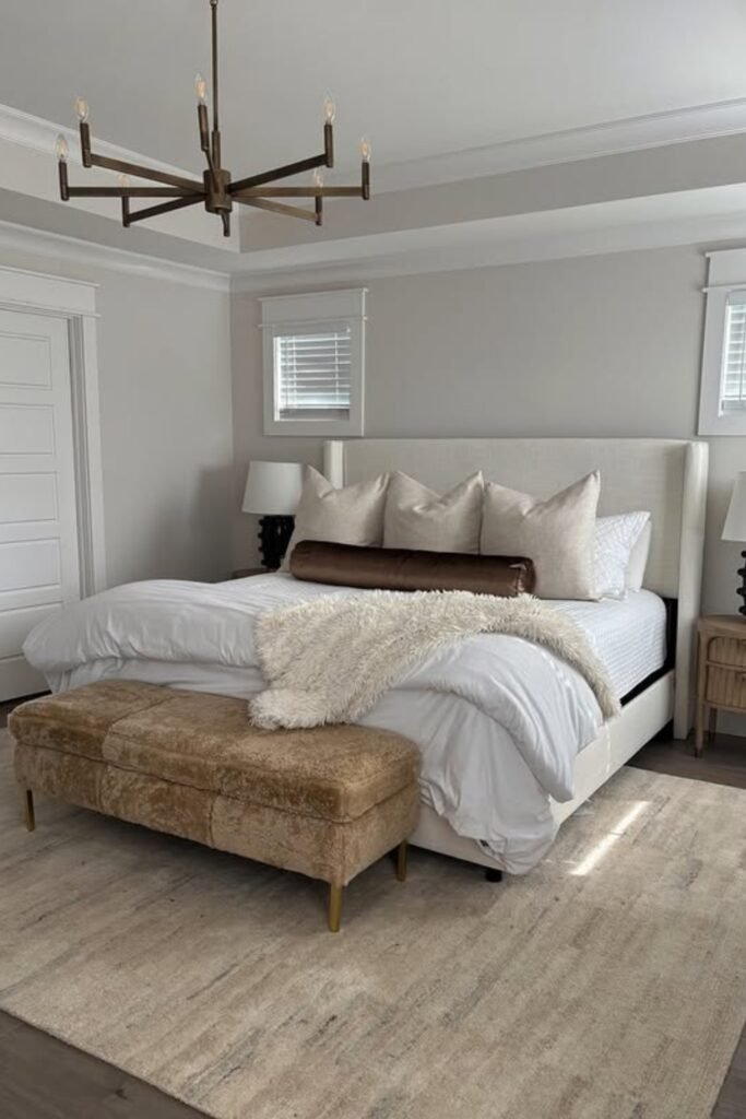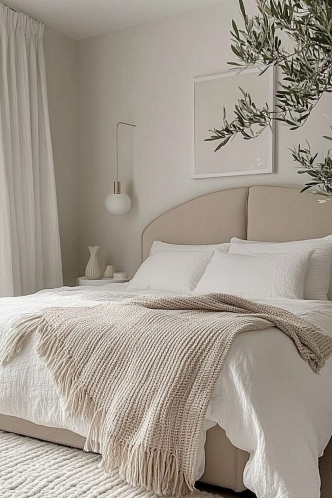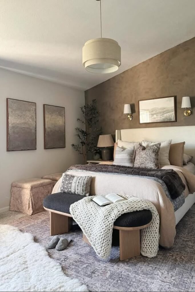When you layer soft bedding, use upholstered or wood furniture, and stick to warm neutrals, you can make the room feel cozy and inviting.