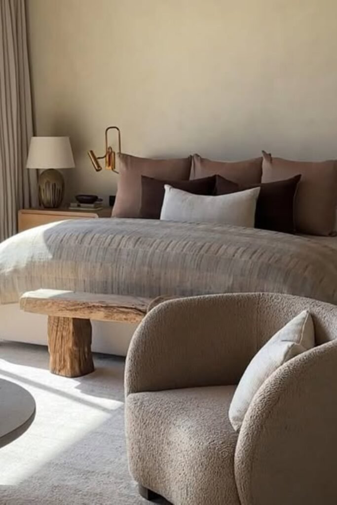 When you keep everything in the same warm, neutral range, you can make the room feel calm instead of busy.
