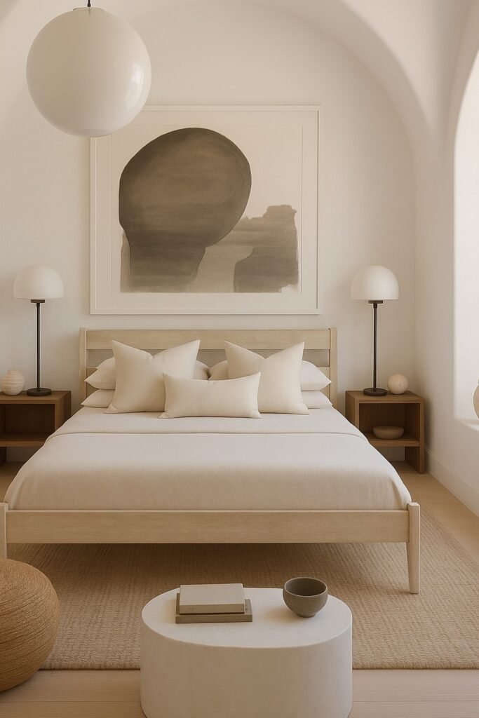 When you start, you can focus on clean, modern shapes, but you’ll want to soften them with natural materials like wood, linen, stone, and clay so your room actually feels inviting.