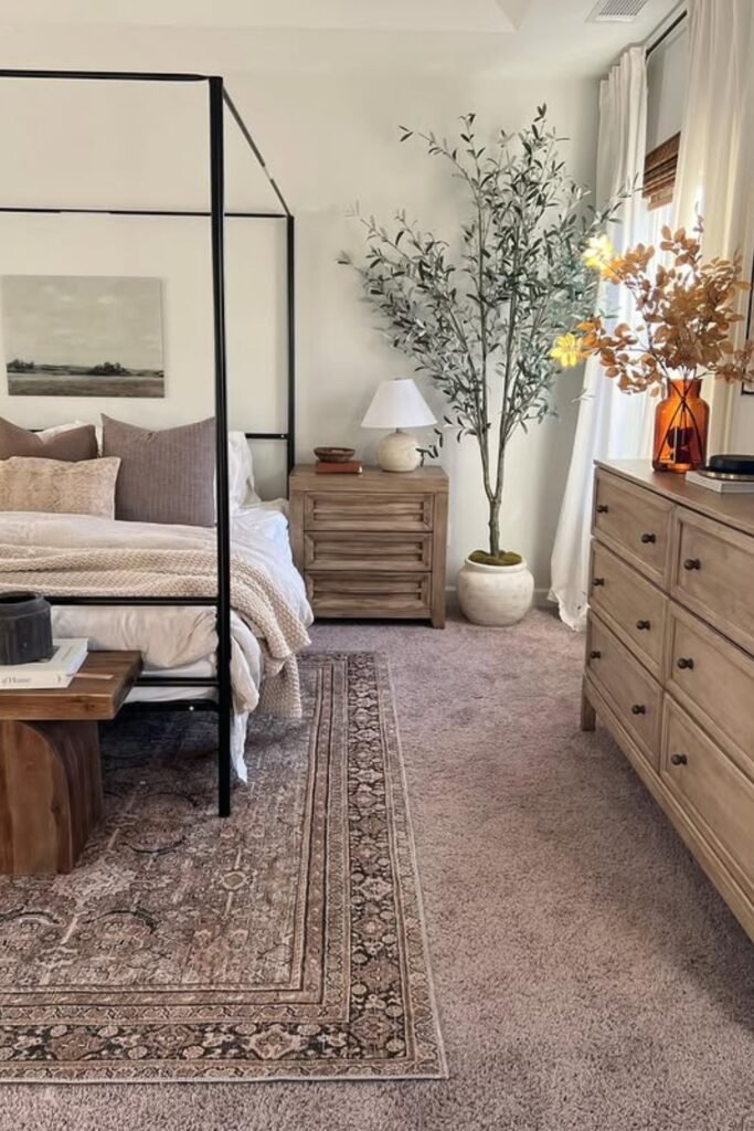 If your room feels plain or builder-basic, you can focus on one strong wood feature, keep bedding light, and add some greenery so the space feels fresh without becoming heavy.