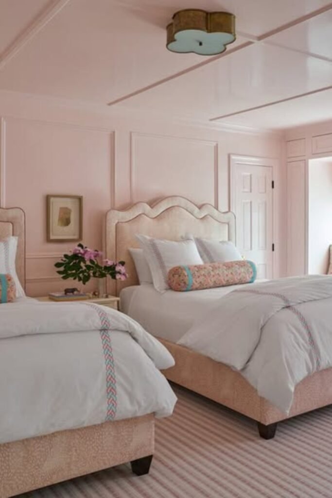 If you match pink beds and subtle patterned bolsters, you’ll notice your room feels polished, not busy.