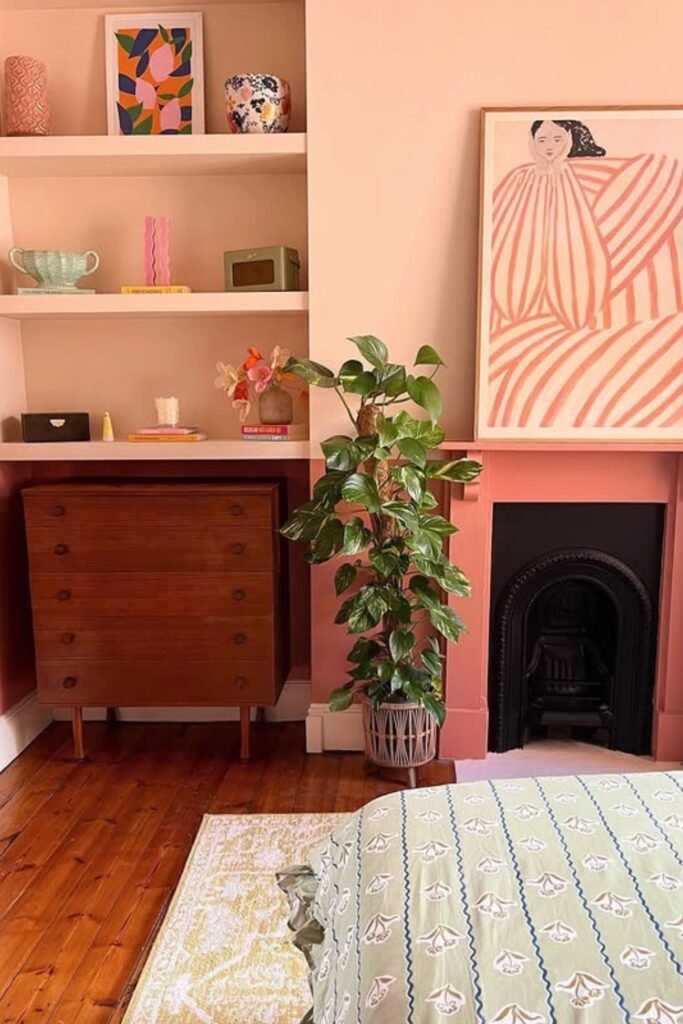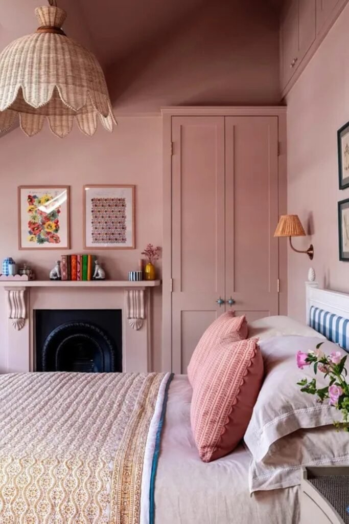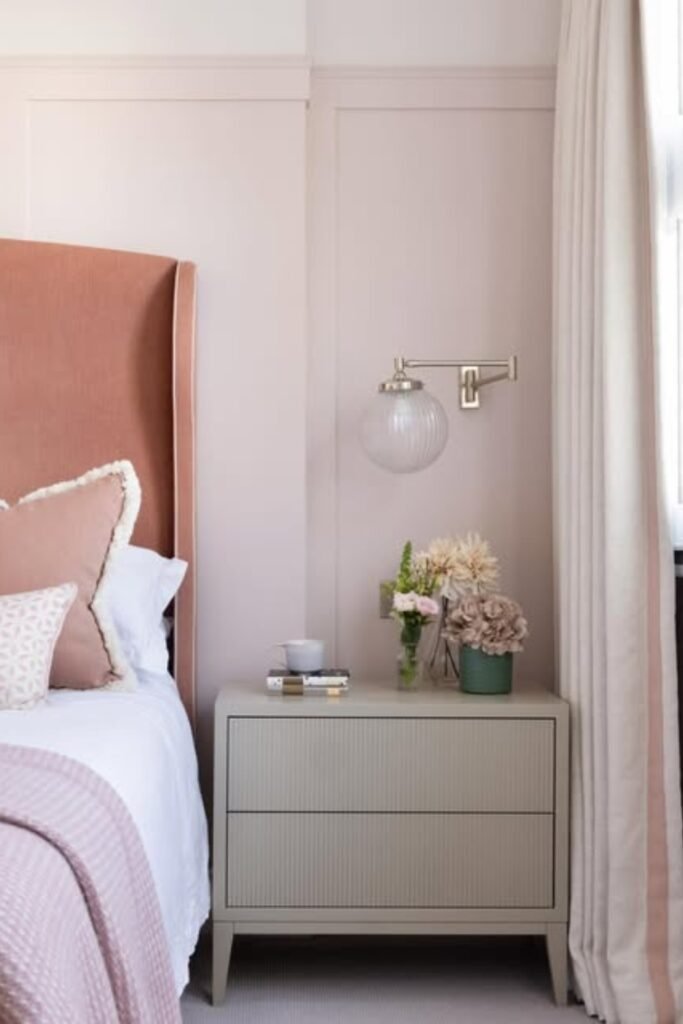Not all pink has to be light and airy. You can use a deeper dusty wall to add drama, and you’ll see how it changes the room instantly.