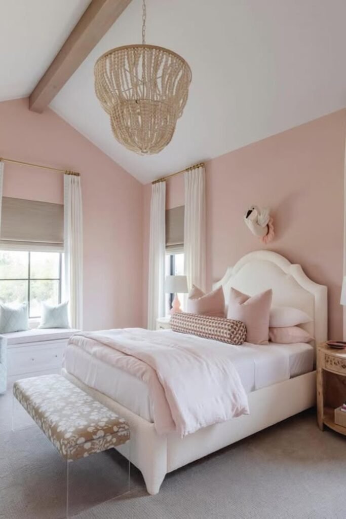 If you have high ceilings, you can match them with blush walls, and you’ll see how the soft pink adds warmth without competing with natural light.
