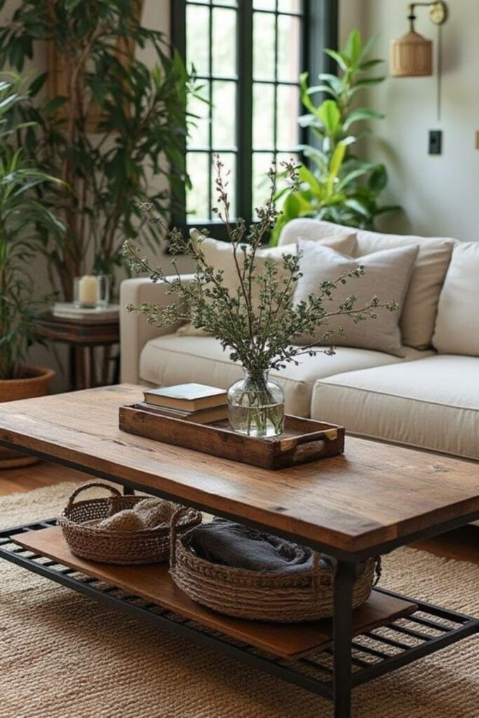 You can pair it with woven baskets underneath and a simple jute rug, and you will see how everything stays grounded.