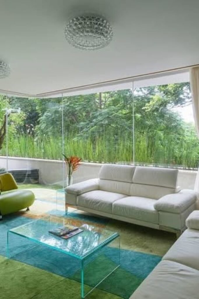 You can keep furniture simple and let the greenery outside become part of your design, and you will see how it grounds the room.