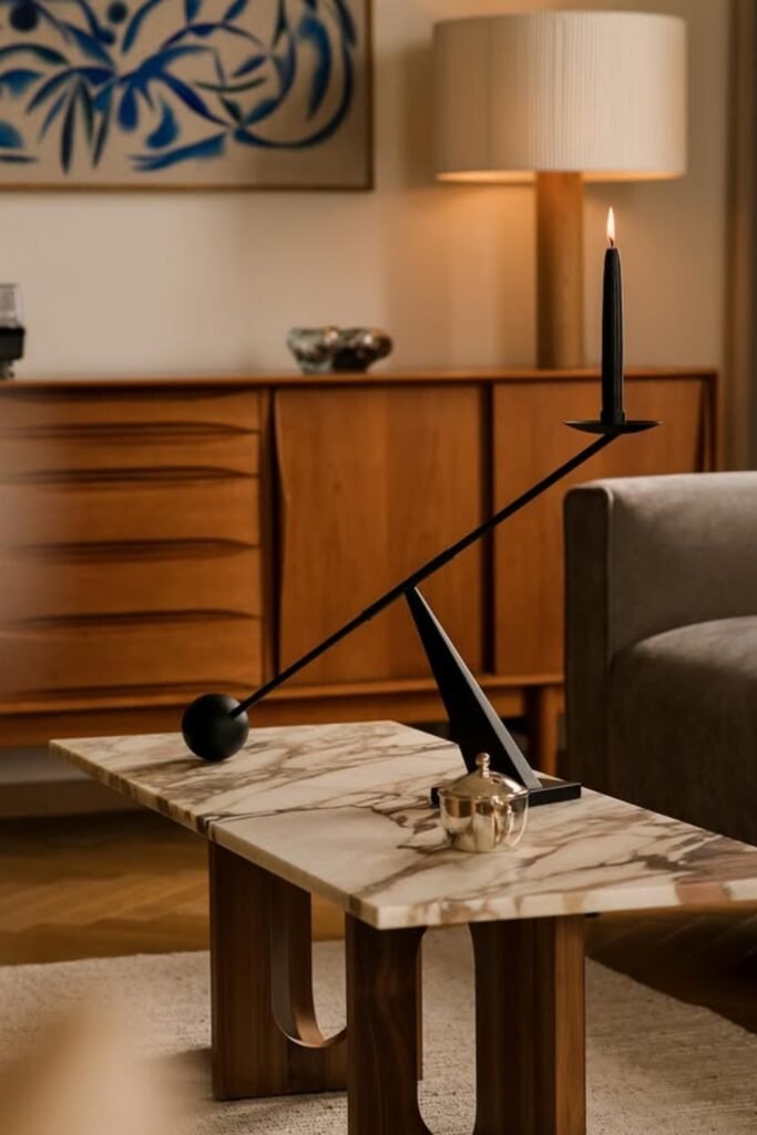 One sculptural candle holder and a solid table can do the job without extra items. Let negative space exist around them so each object feels intentional instead of lost in the room.