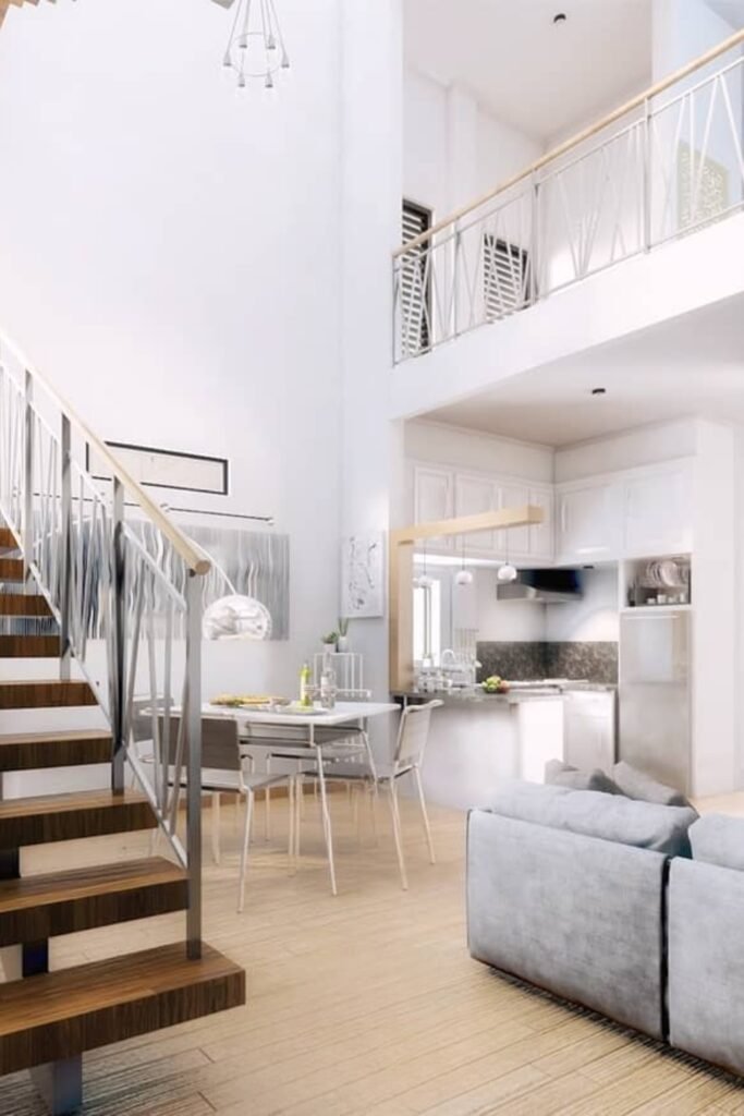 When your living room has high ceilings or a loft layout, using vertical space correctly keeps the room airy.