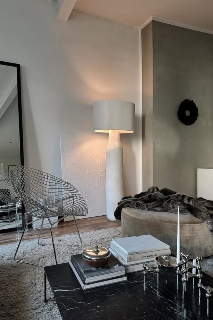 You can add a sculptural chair, a grounded table, and soft lighting to create depth without filling the whole room.