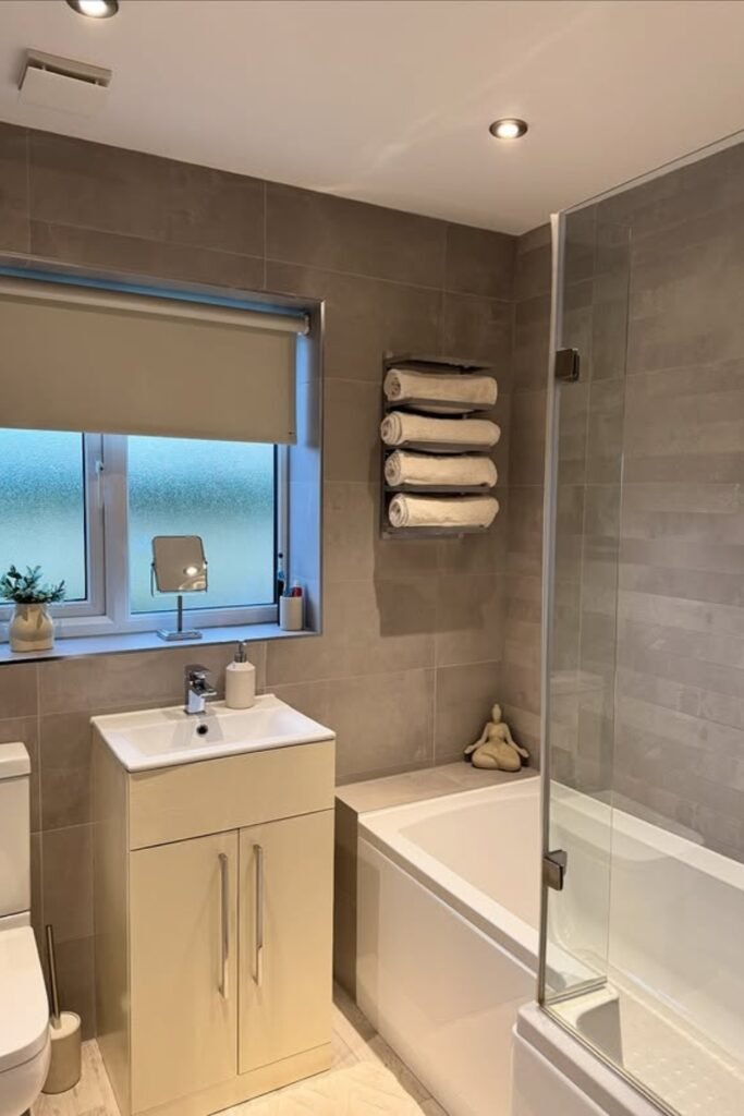 If your bathroom feels narrower, switch to a walk-in shower or wall-hung fixtures so you can move freely without sacrificing comfort.