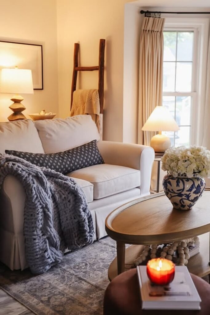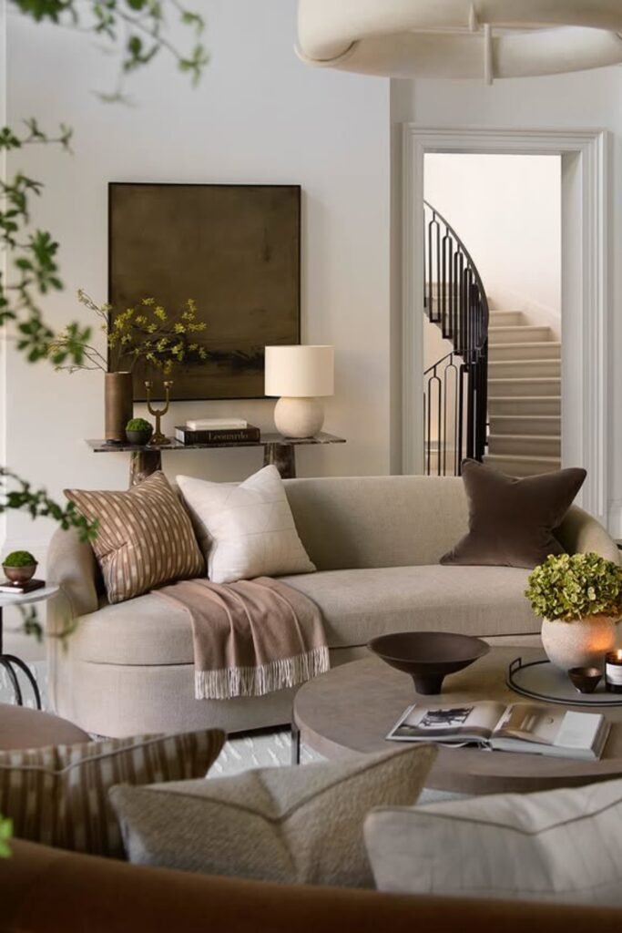 When comfort, texture, and light colors work together, the living room feels polished, inviting, and effortlessly high-end.