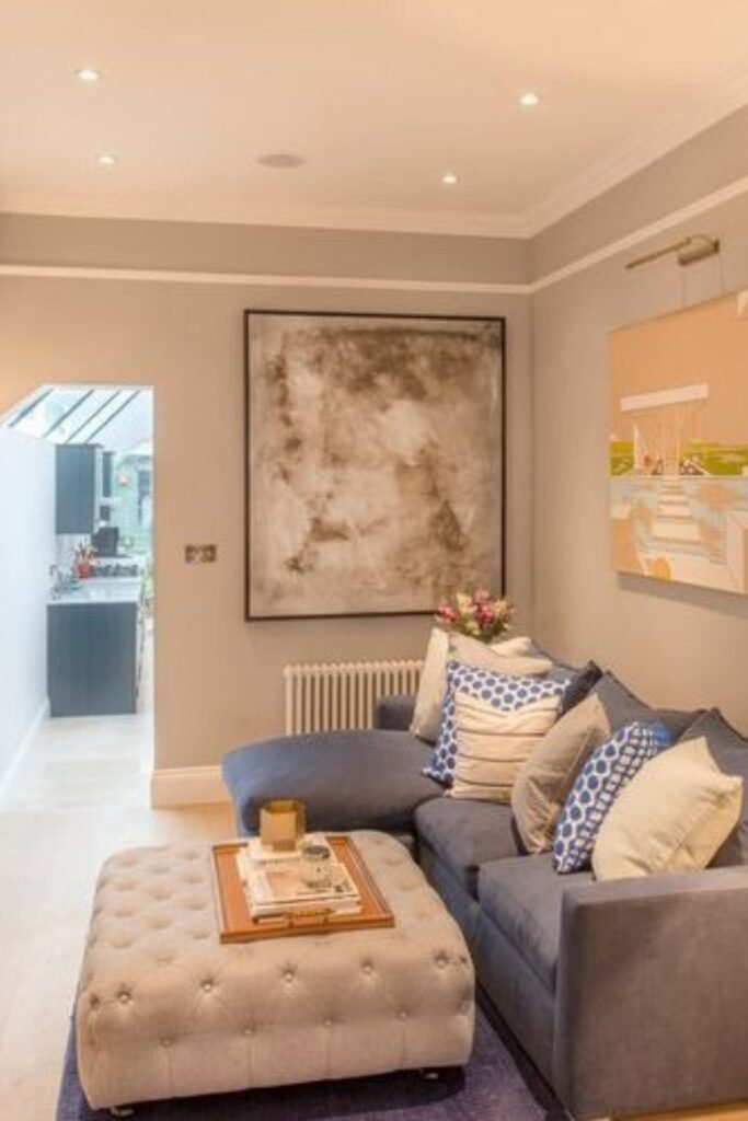 This approach works best in compact living rooms where too many statement pieces would feel heavy.