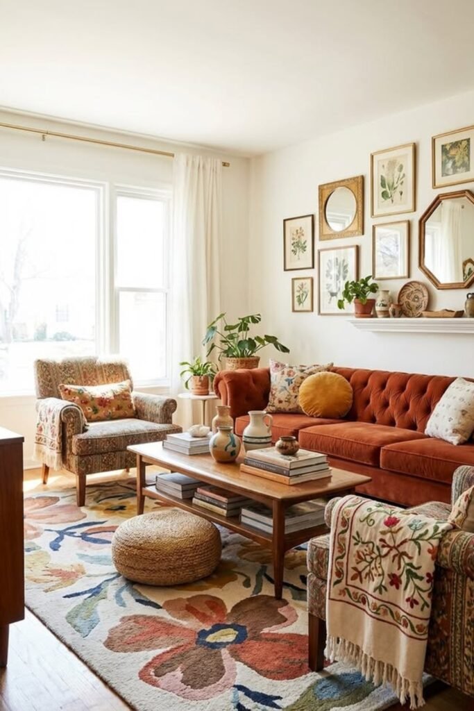 This idea works best in cozy living rooms with good daylight, where warm colors won’t feel heavy.