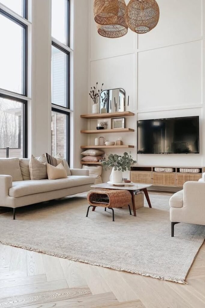 When the focus stays clear and centered, the entire living room feels organized, balanced, and intentionally styled.