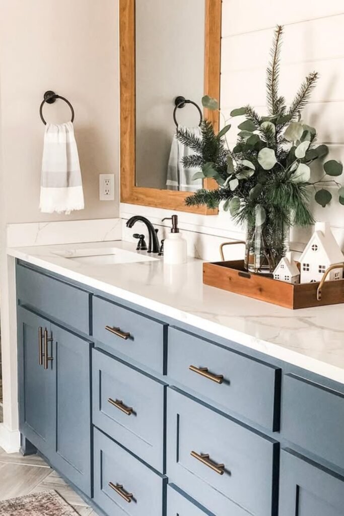 You can keep only what you use daily on top, and let drawers handle everything else. The clear counters make the whole bathroom feel calmer and bigger.