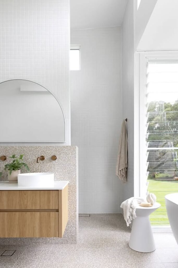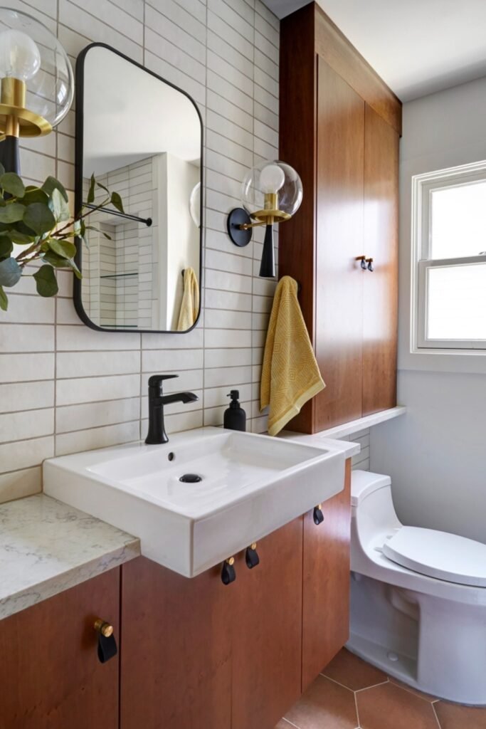 If you overload this area with shelves, heavy frames, or large fixtures, your bathroom starts to feel boxed in.