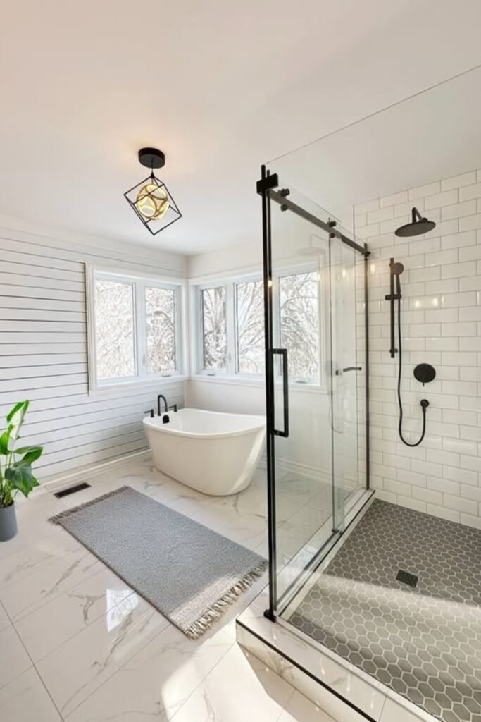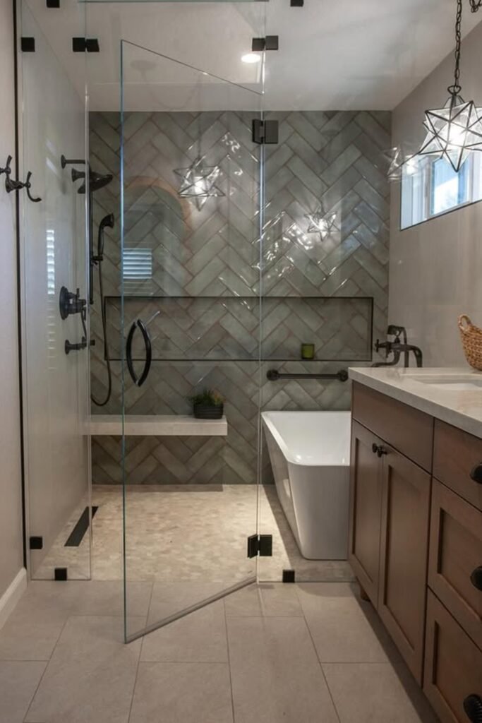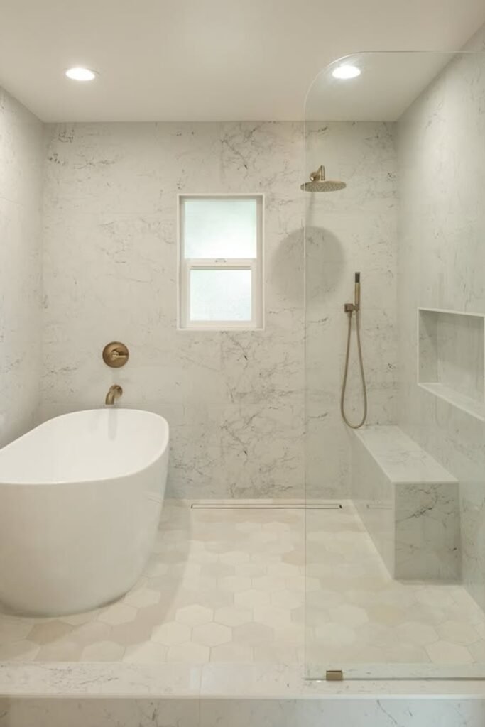 If you want a real soaking experience without giving up a proper shower, this layout can work beautifully for you.