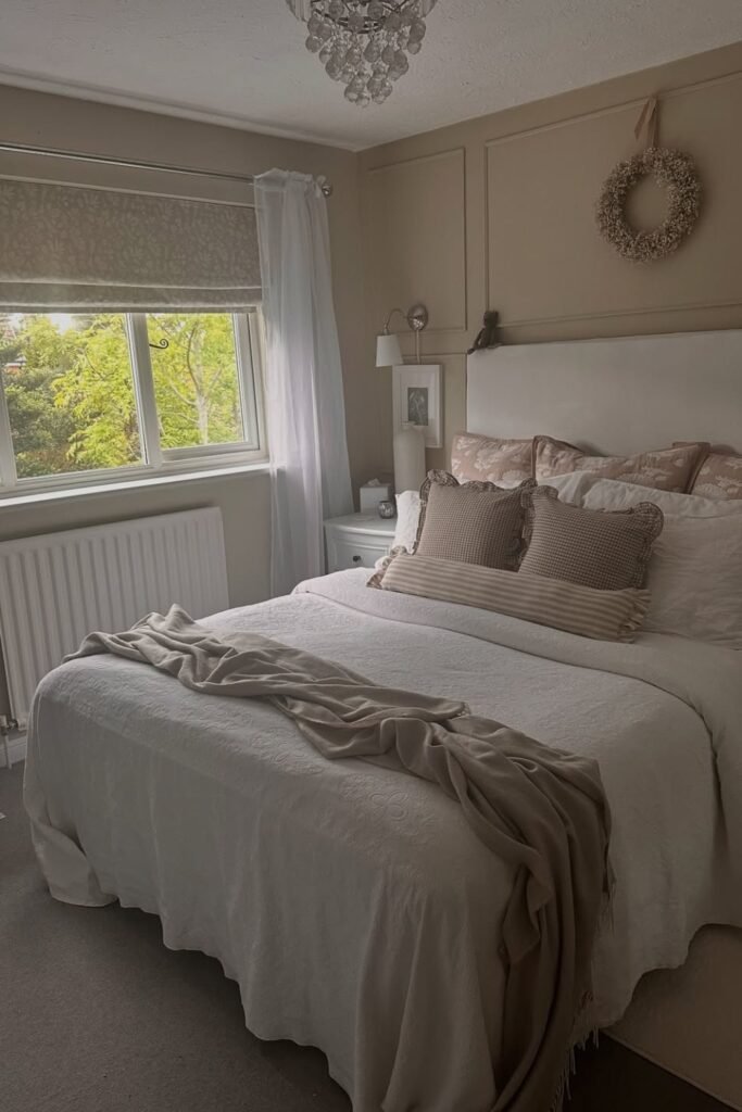 You’ll notice this look fits small bedrooms perfectly. Stick to one neutral family, add subtle texture, and avoid heavy contrasts, you’ll keep the space airy and peaceful.