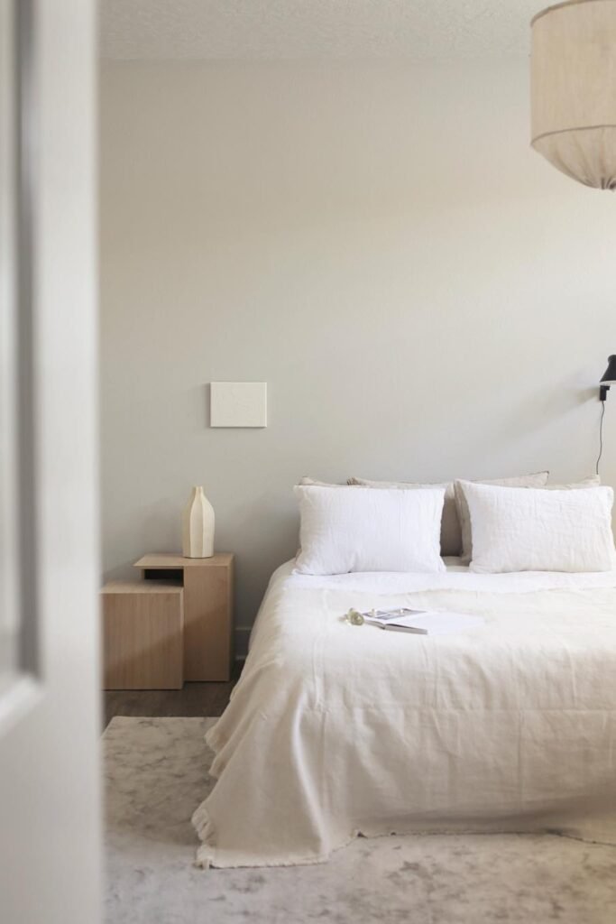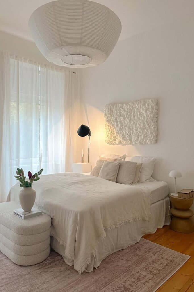 This look works best in small bedrooms or apartments, you should stay within two or three light neutrals, keep decor minimal, and let empty space become part of the design.
