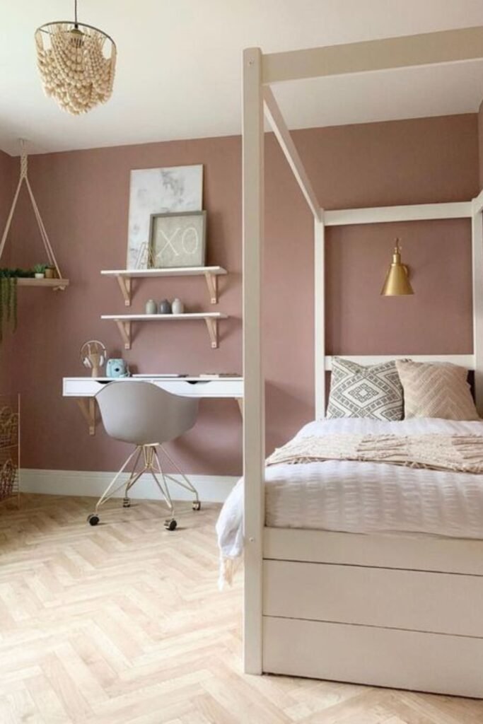 This works beautifully in teen bedrooms or creative spaces, you should choose a warm taupe with a hint of pink and balance it with clean white and pale wood.