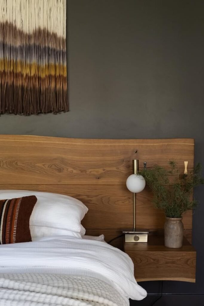 That contrast helps you keep the room fresh instead of heavy. If you try this, you should balance it with light bedding, pale flooring, and warm wood side tables.