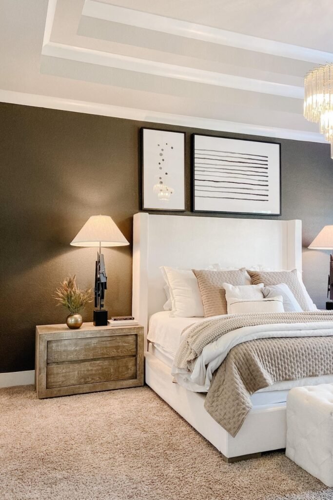 When you add deep brown textiles, simple art, and minimal decor, you let the color set the mood.