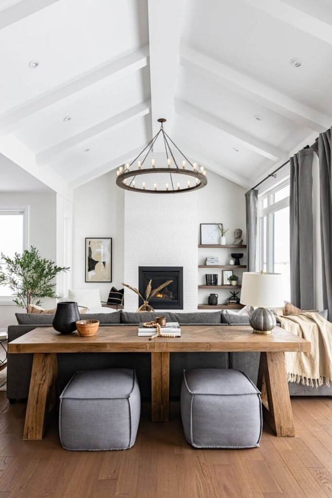 So a vaulted ceiling isn’t just a design feature. It’s a structural choice that changes how you decorate, light, and balance your entire living room.