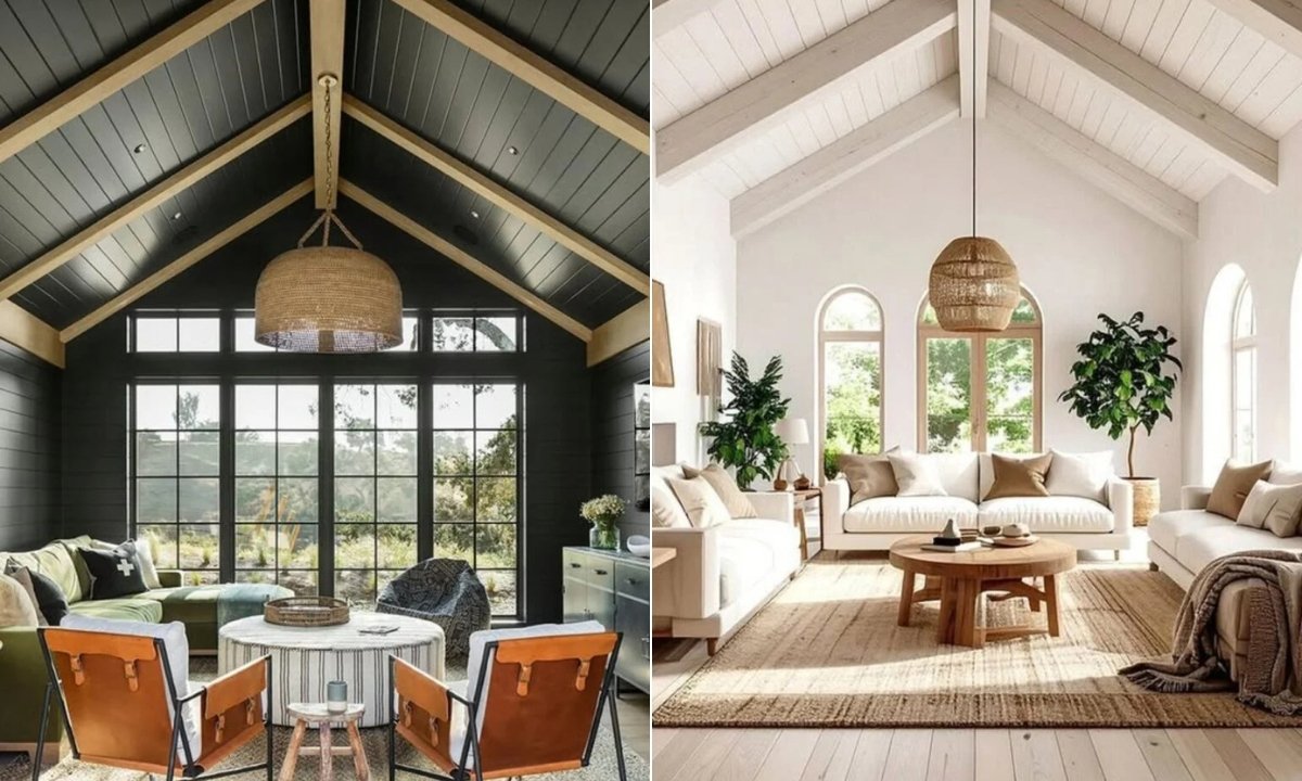 That peak might sit in the center of the room, or it might slope in one direction. Some have exposed beams. Some are smooth and modern. Some feel rustic. Others feel dramatic and sleek.