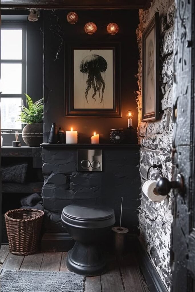 When you use dark walls, rough textures, and low lighting, you can turn the space into a moody retreat instead of a gloomy corner.