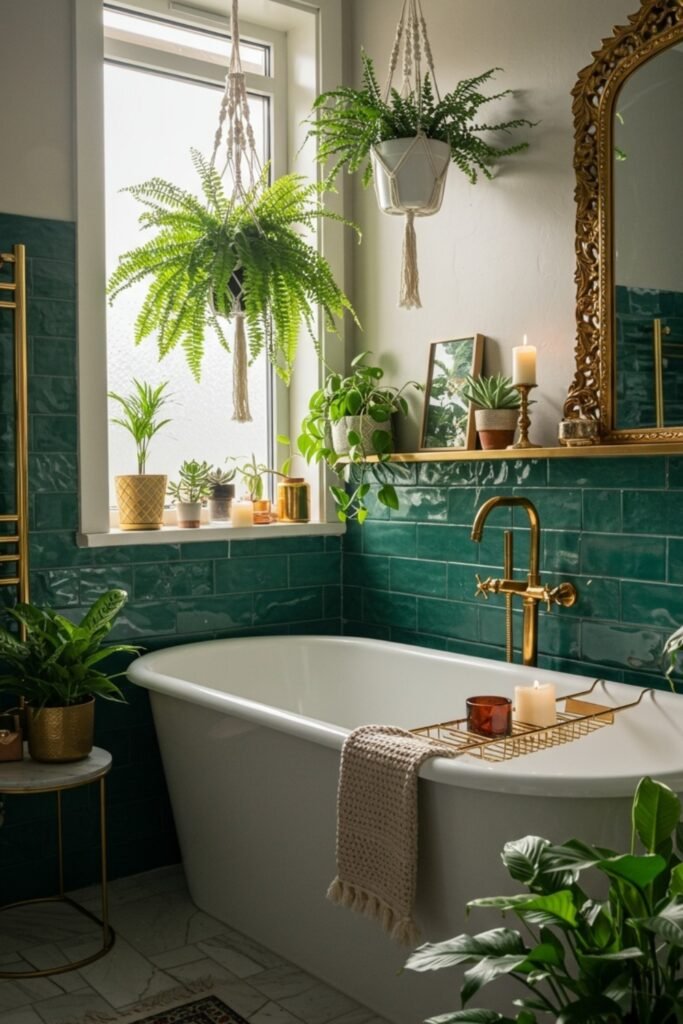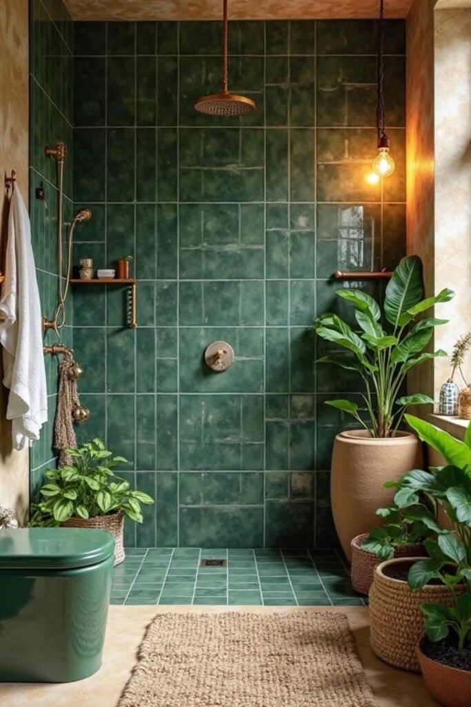 Green tile like this works when you want your bathroom to feel calm, natural, and slightly old-world all at once.