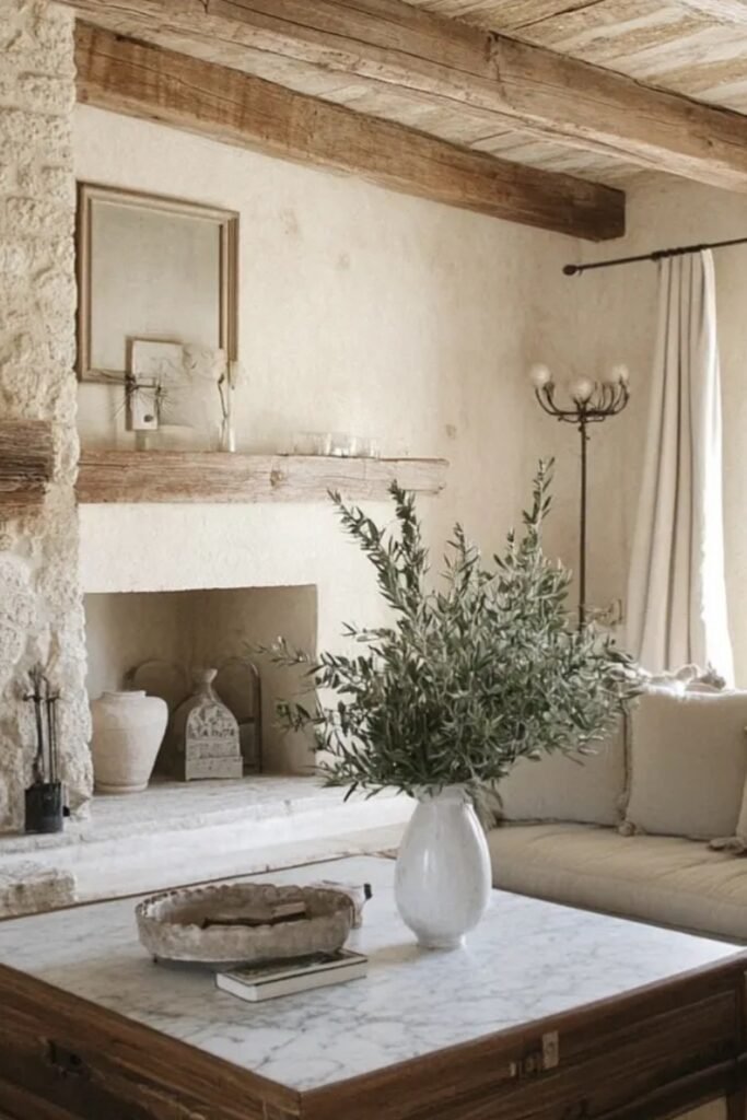 You can balance airy whites with earthy tones, and you’ll feel a cozy yet open atmosphere that’s timeless, welcoming, and effortlessly you.